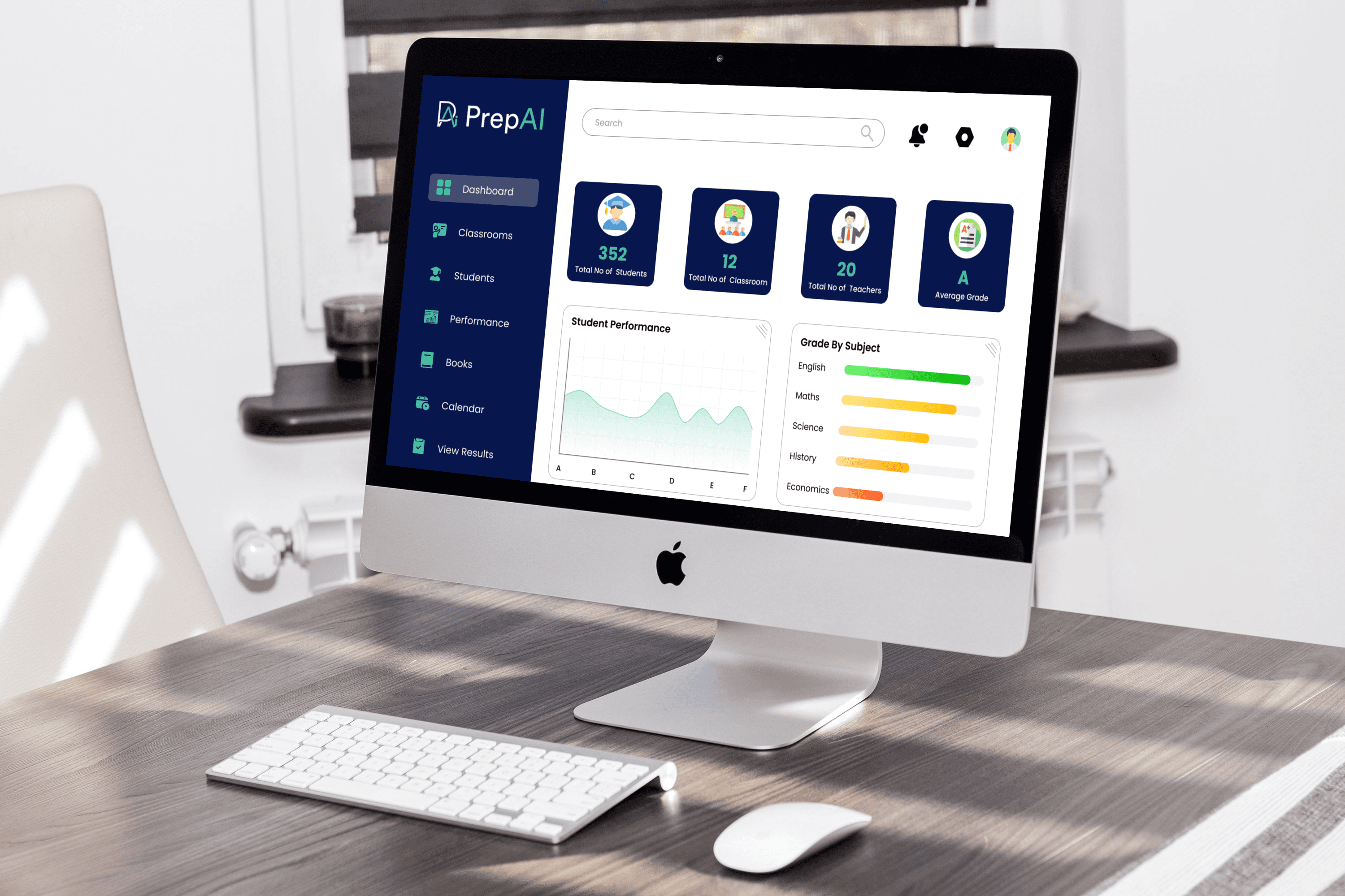 PrepAI is a school dashboard that shows student stats, grades, timetable, and activities in a clean, easy-to-use layout.