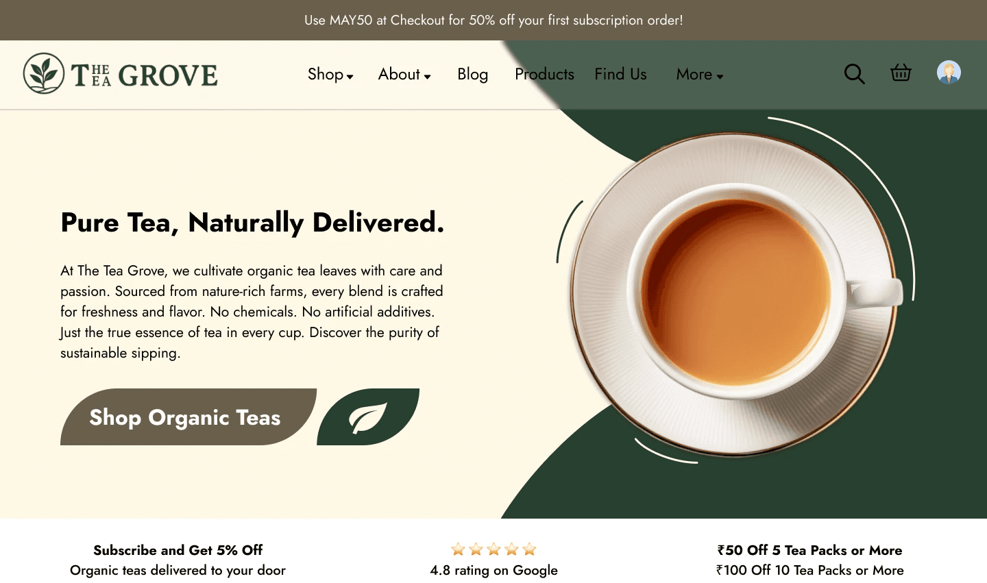 The Tea Grove redesign created a more engaging, trustworthy, and user-friendly experience. With improved visuals, structure, and storytelling, the brand saw higher user engagement and conversion, establishing itself as a trusted name in organic tea.